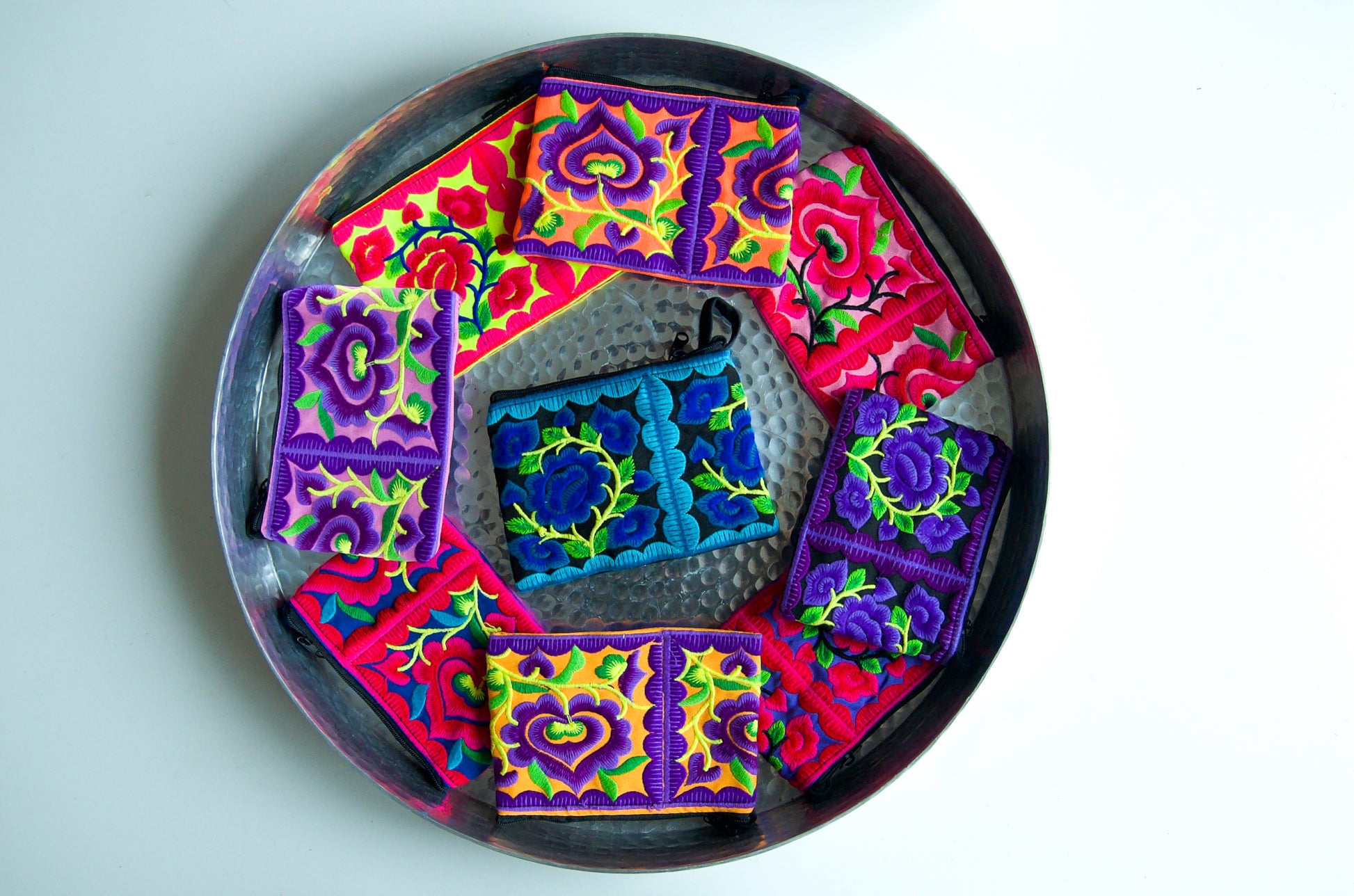 Fair trade from Thailand. It's a great clutch bag for small items such as cash, cards, keys etc.