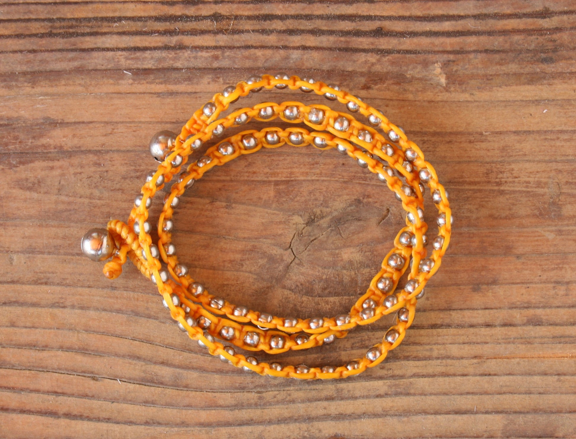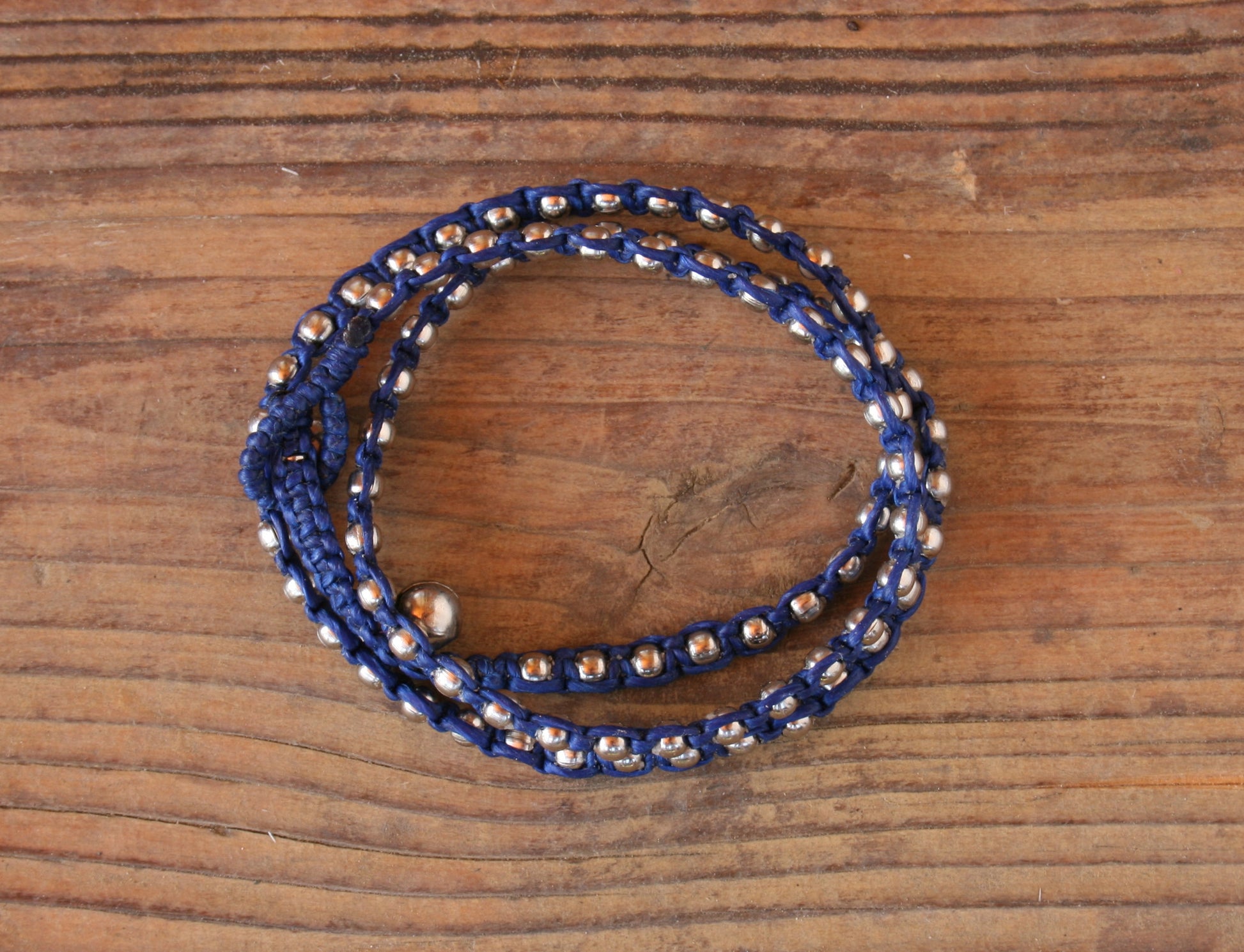 Silver plated brass beads and waxed cotton thread
